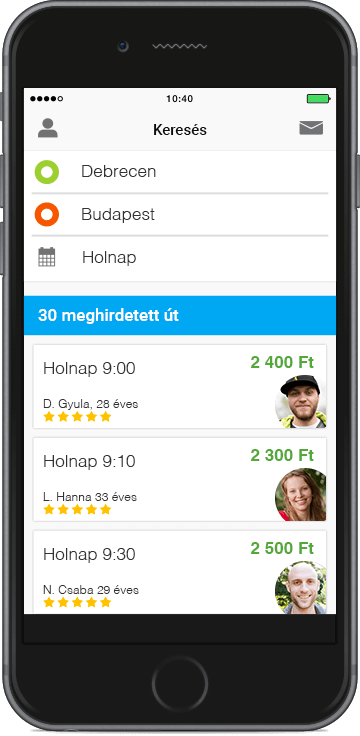 Megnézheted az utasok profilját, amint kapcsolatba léptek veled.